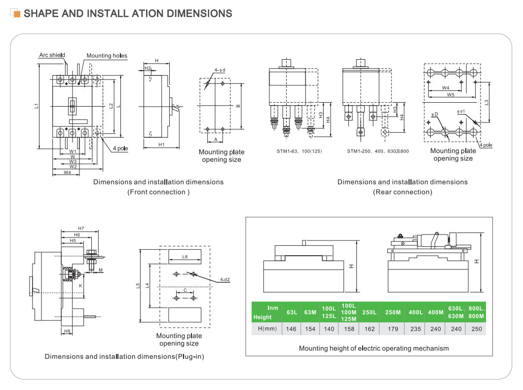 | ماډل | STM1-125 | STM1-250 | STM1-400 | STM1-630 | STM1-800 | STM1-1250 | |||||||||||||