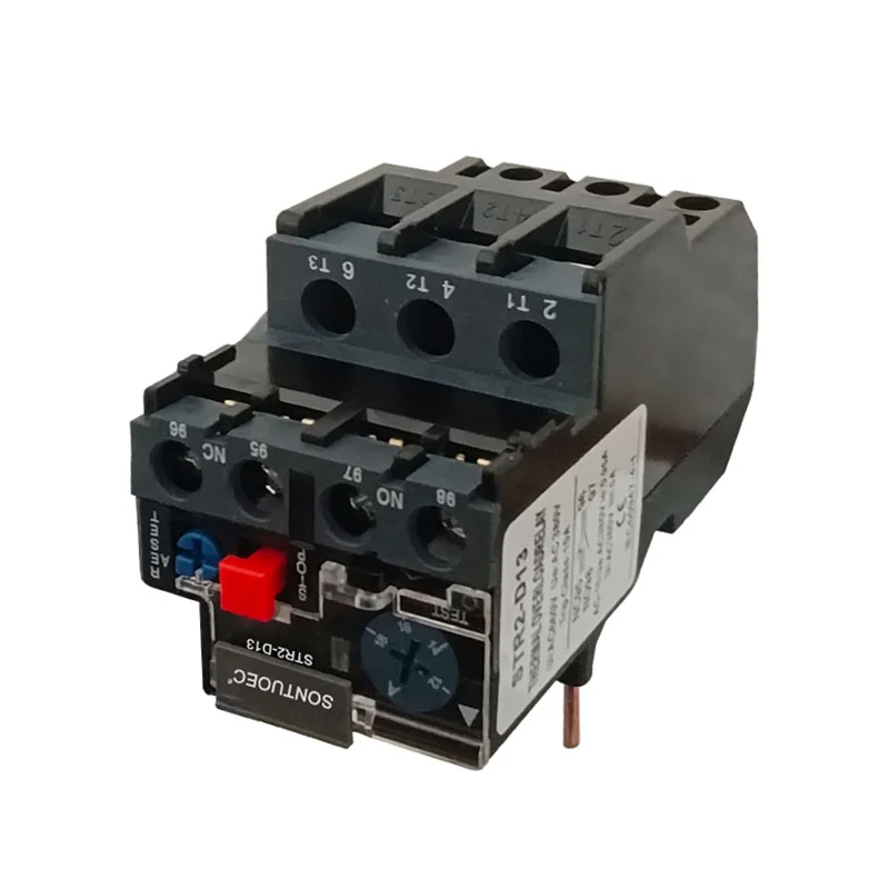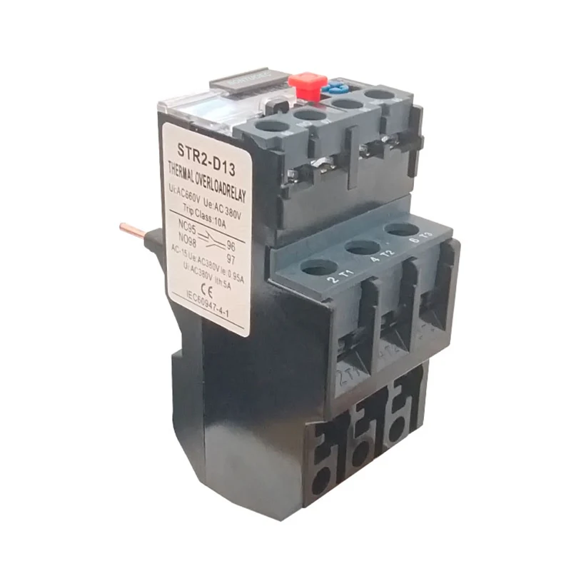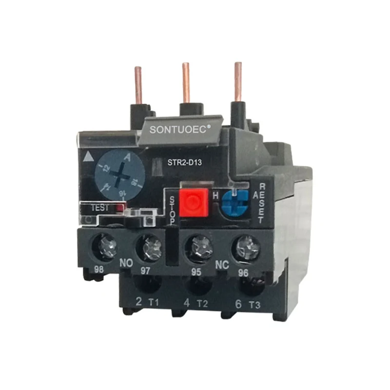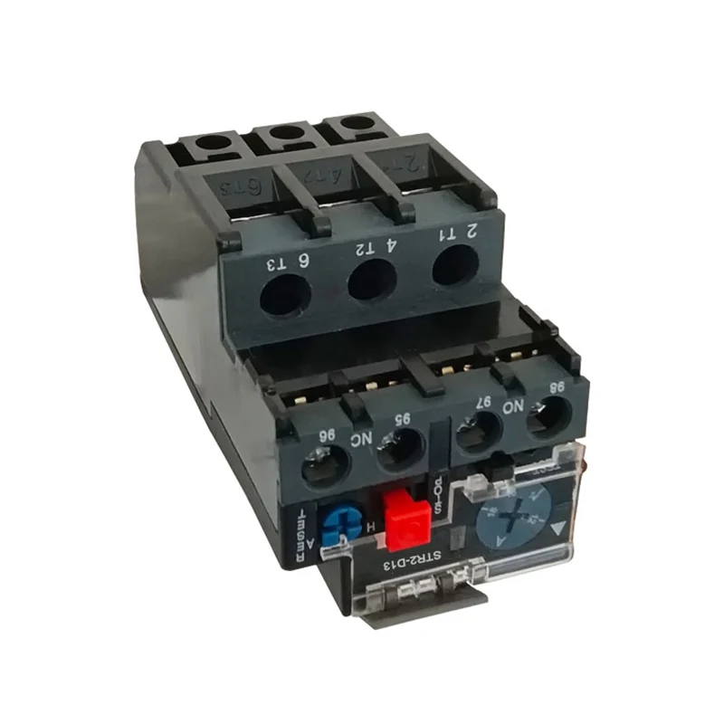 STR2-D13 Thermal relay is the use of current through the heat generated by the thermal element, so that there are different coefficients of expansion of the bimetallic sheet deformation, when the deformation reaches a certain distance, to promote the action of the connecting rod, so as to make the control circuit is disconnected, to achieve the overload protection of the motor. لکه څنګه چې د موټرو د اضافي محافظت عنصر په توګه، Part2-d13 حرارتي ریل د کوچني اندازې، ساده جوړښت او ټیټ لګښت ګټې لري.